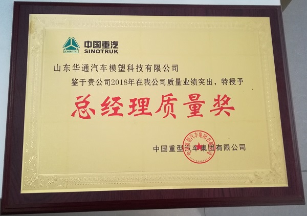 12月18日,中国重汽集团2019年首届供应商大会于山东济南召开。会上,山东华通汽车模塑科技有限公司荣获“优秀供应商”奖和“总经理质量奖”。