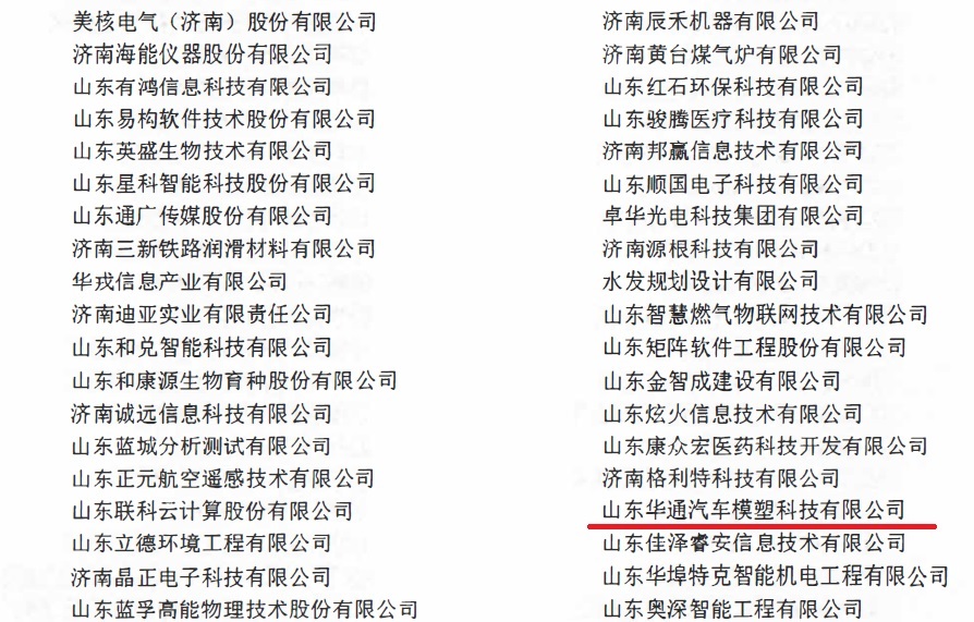 2019年10月 25日 ,济南市工业和信息化局下发了《关于公布第七批市级“专精特新”中小企业的通知》。根据区县初审和专家评审,市工业和信息化局局长办公会研究,并经公示,山东华通汽车模塑科技有限公司等获评为“专精特新”中小企业。
